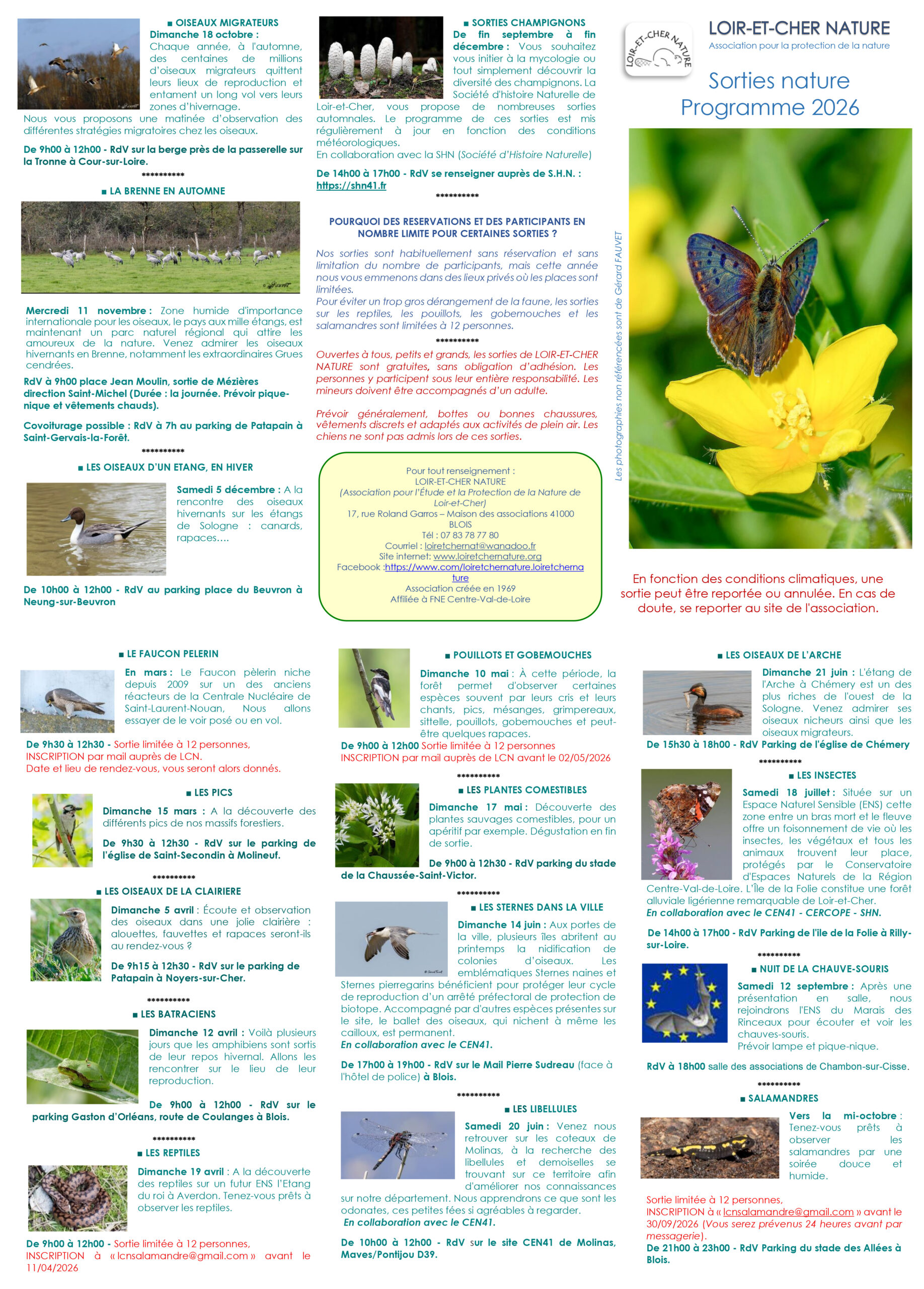 3 sorties sont prévues avant la parution du dépliant 2026 et du bulletin 2025 Attention si vous avez lu le courrier des vœux 2026 des dates ont changées Une sortie Lire la suite →